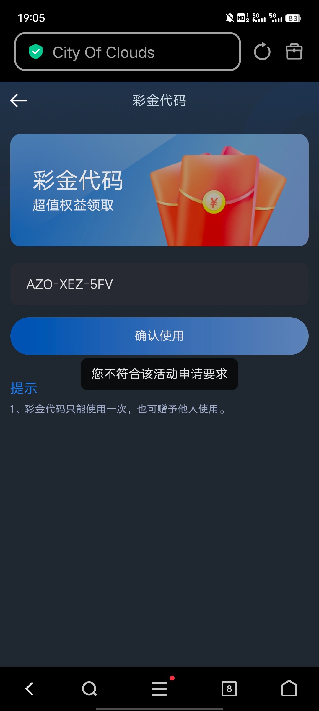 兑换入口在自助服务→彩金代码←兑换