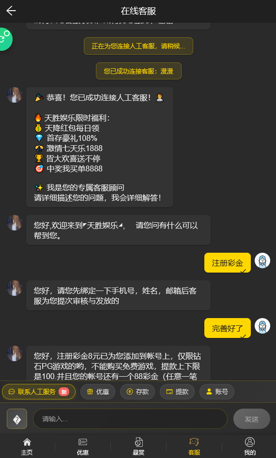 【天胜娱乐】电话特邀送8