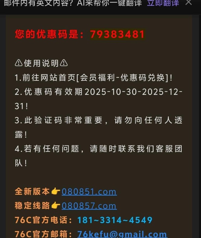 所有撸成功的老哥,最后请向客服说明是在