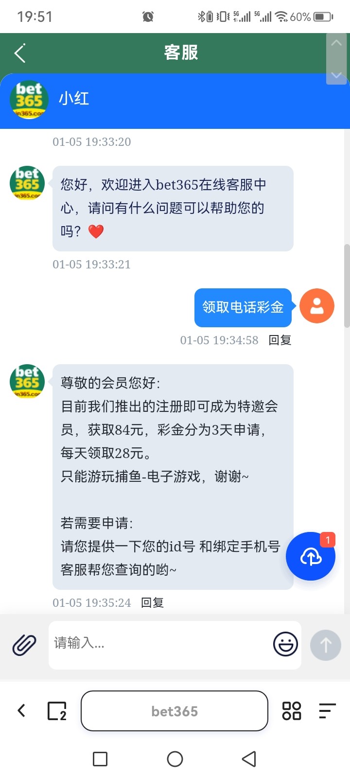 365439.vip 跟在线客服说电话打来注册彩金,申请到了,没打出来,我的是新号注册的,没接过电话碰瓷碰到了
