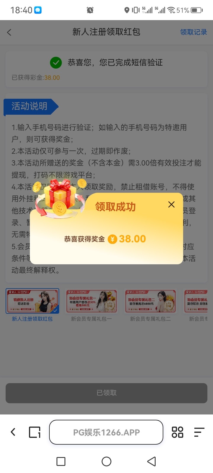 【pg娱乐城】电话特邀验证短信送38