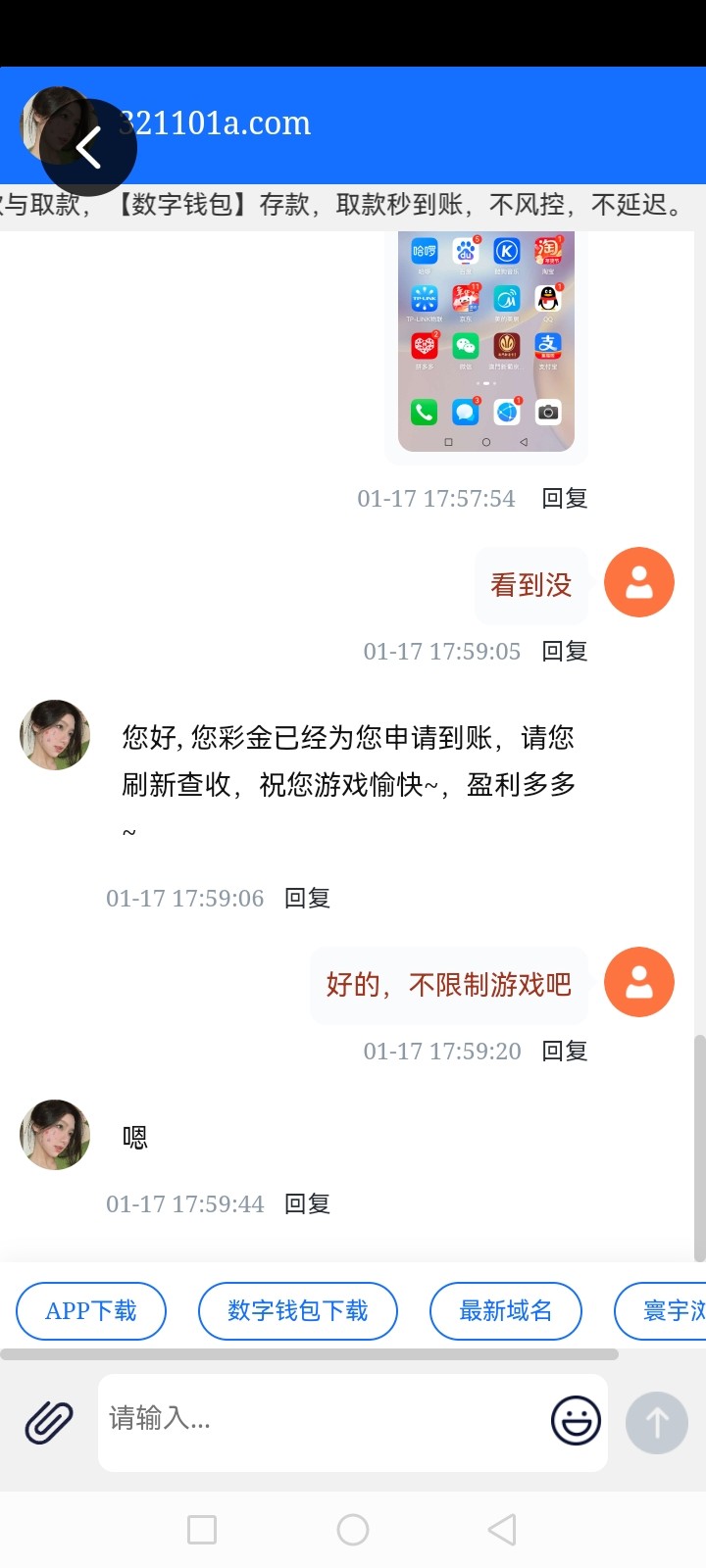 321101a.com 下载app绑定个人信息,找客服领18
